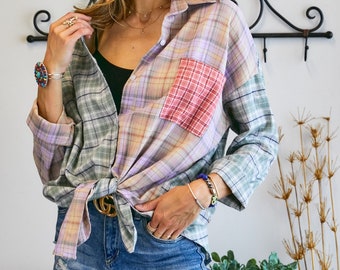 Flannel Shirt Bright Color Plaid Design Boardwalk Vintage
